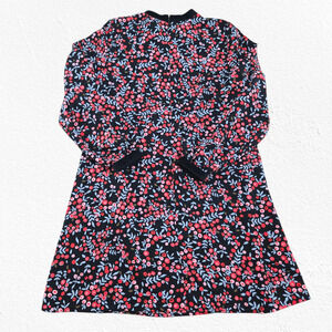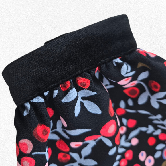 LOFT Black Floral Berry Print Velvet Collar Retro Knee Length Dress Size Small