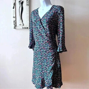LOFT Black Floral Print Rayon Wrap Romper Dress Size L