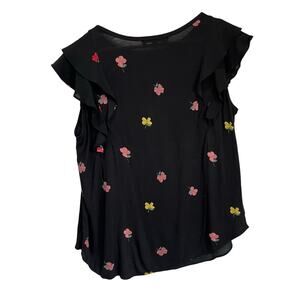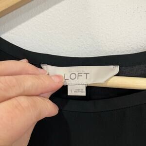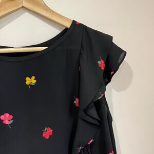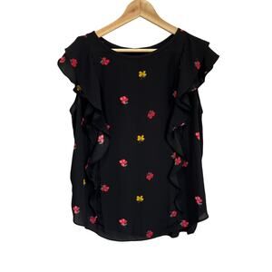 LOFT Black Floral Ruffle Sleeve Blouse Size L Feminine Chic Office Cute