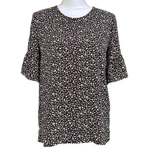 LOFT Black Floral Top with Bell Short Sleeves Size S LIKE NEW