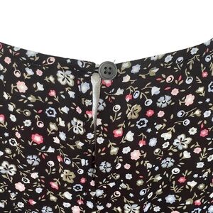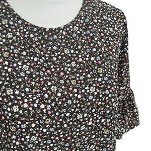 LIKE NEW LOFT Black, White, pink, blue, olive Floral Top with Bell Short Sleeves and back button/loop closure Size S. See photos for measurements laying flat.