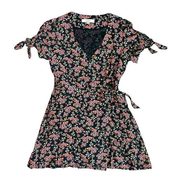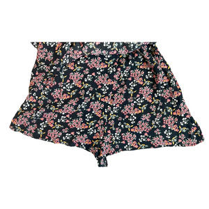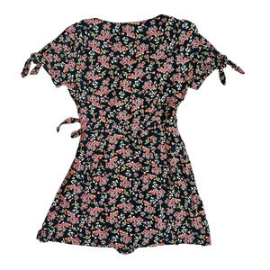 LOFT Black Floral Wrap Short Sleeve Romper Womens Size 4