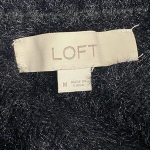 LOFT Black Fuzzy Off-The-Shoulder Sweater, Size Medium