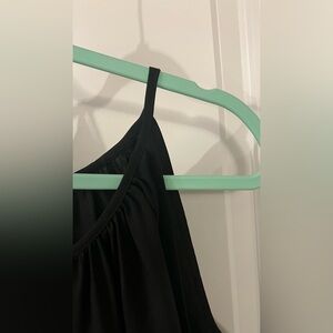 Chic black sleeveless top with gathered neckline. Versatile and stylish.