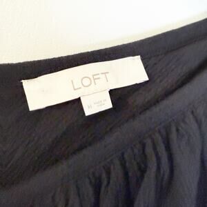 LOFT Black Gauze Ruffle V-Neck Top Size Medium