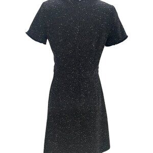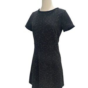 LOFT dress, black glitter knit dress, fit & flare silhouette, women's party dress, short sleeve dress, size 6, holiday dress, sparkly fashion