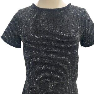 LOFT Black Glitter Knit Fit & Flare Dress Sz 6 Short Party Sparkly Holiday Chic