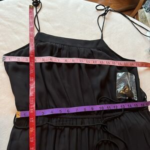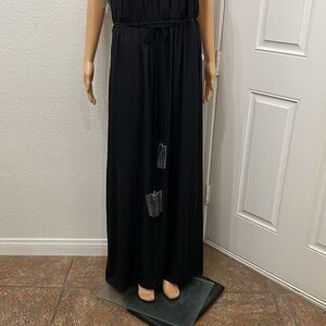 LOFT Black Maxi Dress Sz Large Adjustable Tie Strap Elastic Waist Tassel Straps