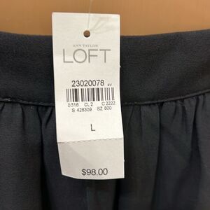 This stunning black maxi dress from LOFT features a sleeveless design with delicate spaghetti straps, perfect for a cocktail night out. The dress showcases a silhouette that adds texture and movement, creating an elegant and sophisticated look. Its lightweight fabric ensures comfort and style, making it an ideal choice for any special occasion.