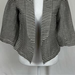 LOFT Black & Metallic Champagne Striped Linen Party Event Jacket NWOT Size 0P