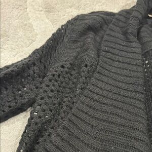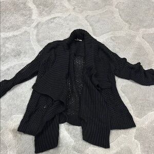 This chic black cardigan from LOFT features a stylish open front design, perfect for layering. Its long sleeves and soft, knitted texture offer a comfortable and elegant fit, making it a versatile addition to any wardrobe.
