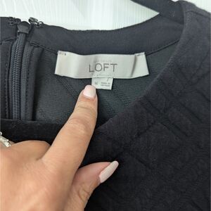 LOFT black quilted dress medium, drop waist twirl dress, women’s casual party dress, LOFT work dress medium, textured black dress M