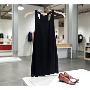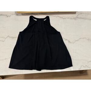 Classic and versatile black LOFT sleeveless blouse in size Large. Features a flattering flowy silhouette, racerback style, and subtle front slit for modern detail. Fully lined. Perfect for work, date night, or layering under a blazer.