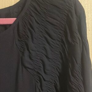LOFT Black Ruched neckline and sleeves Blouse Long Sleeves Size Small Elegant
