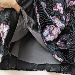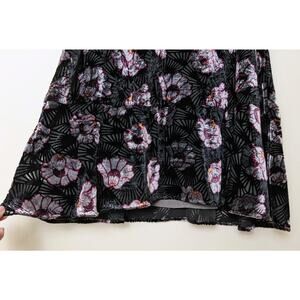 LOFT Black & Silver Iced Floral Velvet Sleeveless Peplum Swing Dress Size Small