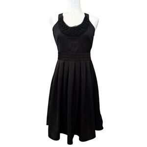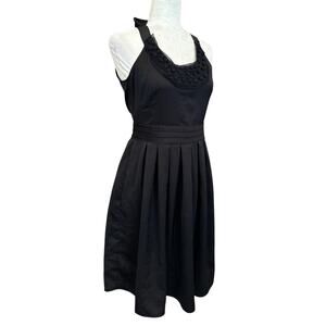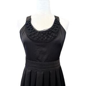 LOFT Black Sleeveless Pleated Button Accent Dress with Bow Women's Size 2