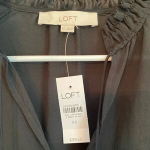LOFT Black Smocked Tie Neck Top