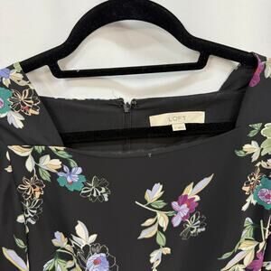 LOFT Black Square Neck Cuffs Sleeves Floral Mini Dress