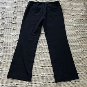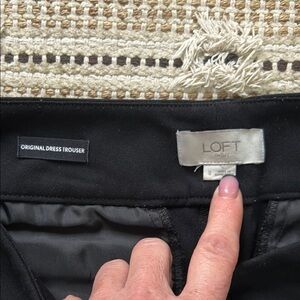 These LOFT trousers feature a sleek, tailored design in a deep black hue, perfect for both casual and semi-formal occasions. Crafted from a medium-weight fabric, they offer a structured fit with a classic straight-leg cut. The clean seams and traditional waistband add to their sophisticated appeal.