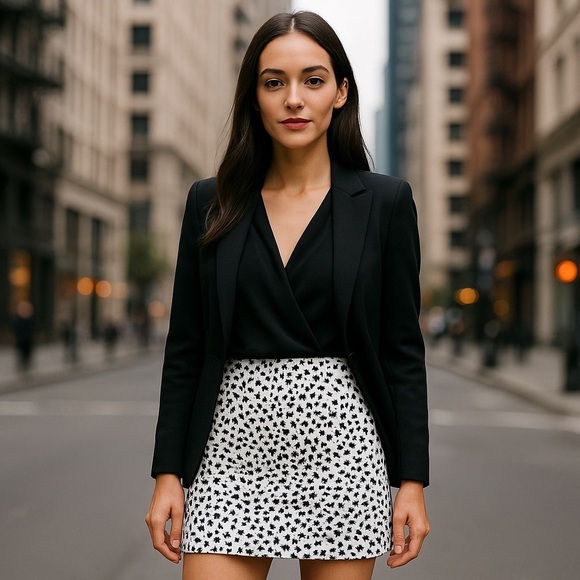#MiniSkirt #OfficeToOut #CityChic #AnimalPrint #StreetStyle #Workwear #NeutralVibes #MonochromeStyle #LOFT #Worktoweekend #chicminiskirt
