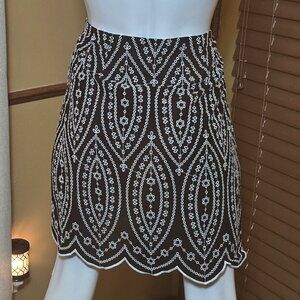 LOFT Black & White Embroidered Scalloped Mini Skirt Easter / Spring sz 4