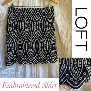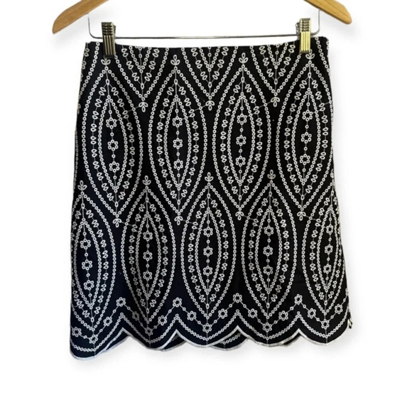 LOFT Black White Embroidered Scalloped Shift Mini Skirt, 0, Like NEW