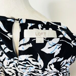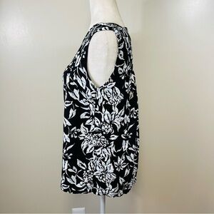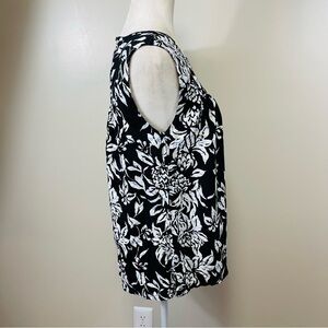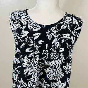 LOFT Black & White Floral Print Pleated Sleeveless Top - SMALL