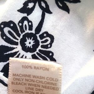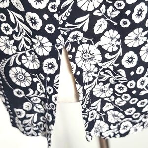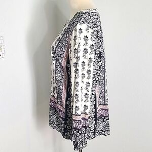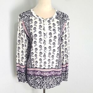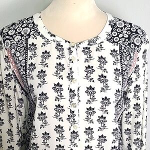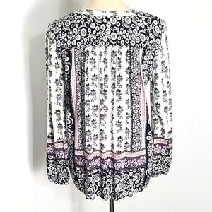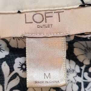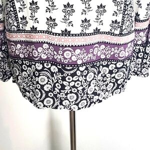 LOFT Black & White Floral Print Top with Pink & Purple Accents, Size Medium