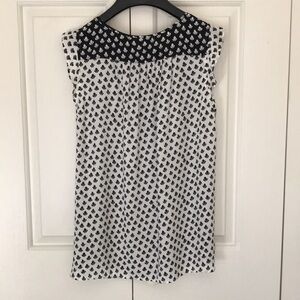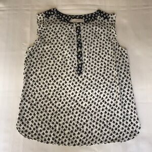 LOFT Black White Geo Print Henley Blouse Cap Sleeve Lightweight Top SP