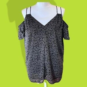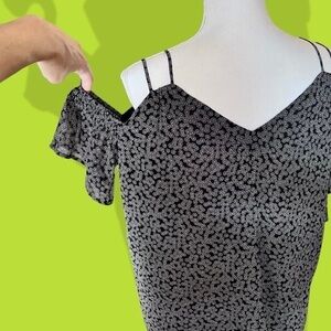 LOFT Black & White patterned Top with V-neck, double spaghetti straps and fluttery off the Shoulder short sleeves, size S. Fully lined and in like new condition.