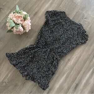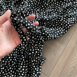 LOFT Black & White Polka Dot Ruffle Belted Wrap Romper