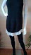 This long chic black sleeveless LOFT sweater is perfect for the crisp, cool autumn weather and any occasion. Its layered design with a black and white polkadot ruffle hem adds a touch of femininity to your outfit.