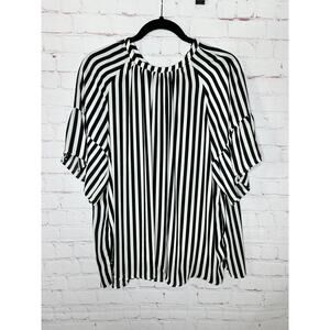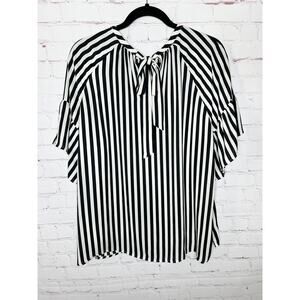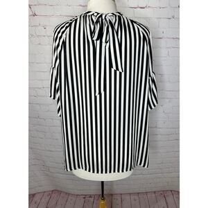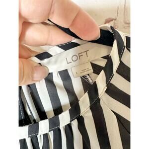 LOFT Black White Vertical Stripe Short Sleeve Blouse Womens Large Top