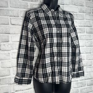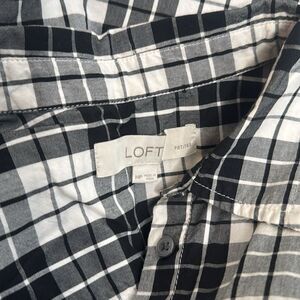 LOFT Black & White Plaid Button Down Shirt Size MP Medium Petite