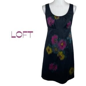 LOFT Black With Watercolor Floral Print Career Office Dress NWOT Size 4