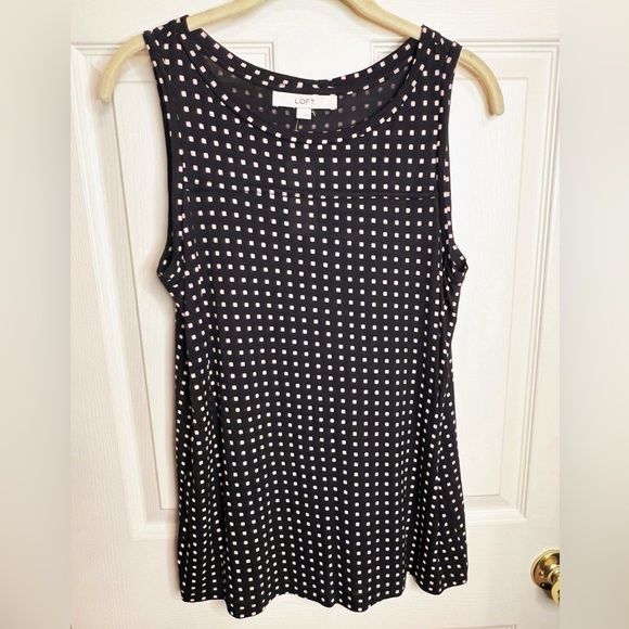 Elegant tank top with a checkered pattern. Sleeveless design for versatile wear.
