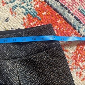 Black and gold diamond tiled pattern. This A-Line skirt has an exposed zipper in the back.