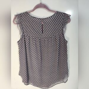 LOFT Black and Lilac Smocked Cap Sleeve Blouse, Size Medium