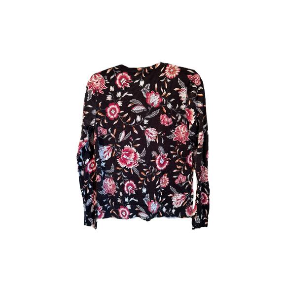 • LOFT women’s blouse in black with red, blush, and cream floral print