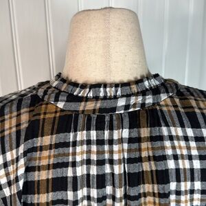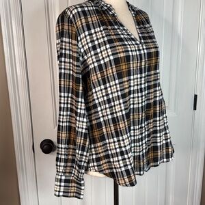 LOFT Black and Tan Plaid Button-Down Shirt Sz XL
