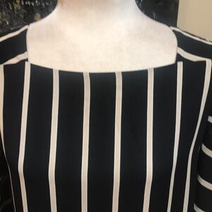 LOFT Black and Tan Striped Dress w/Puffed Side Rounded Hem and Lining-SP