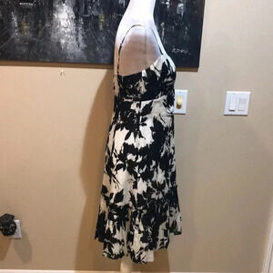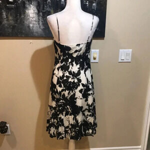LOFT Black and White Floral Cotton Dress with Adjustable Straps & Ruffle Hem-8