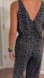 Elegant jumpsuit with black and white polka dot pattern. Sleeveless design. Perfect for versatile styling. It is a thick not stretchy material. Has pockets.