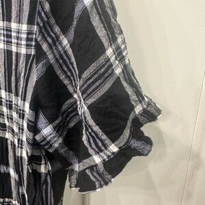 Chic black and white plaid shirt from LOFT. Features a button-up front and short sleeves. Perfect for casual outings.