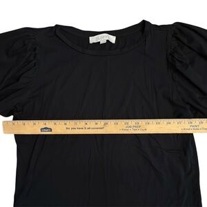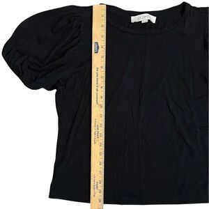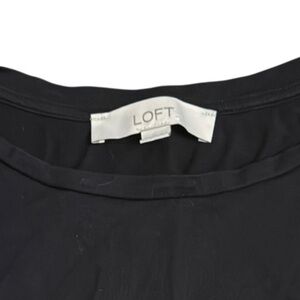This stylish blouse from LOFT features a striking black and white color scheme with puffed sleeves that add a touch of elegance. The blouse is designed with a comfortable fit, making it perfect for both casual and formal occasions. Its soft fabric ensures a pleasant wearing experience, making it a versatile addition to any wardrobe.