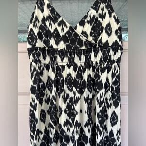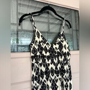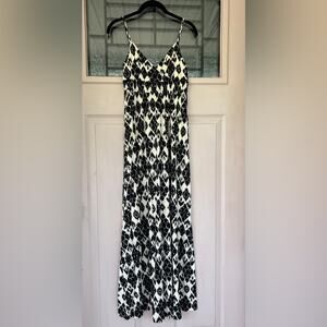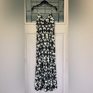 LOFT Black and White Smocked A-Line Maxi Dress | Size XS