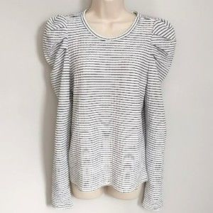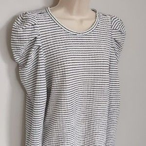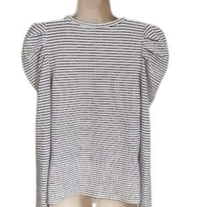 LOFT Black and White Striped Pleated Puffy Shoulder Long Sleeve Top Medium