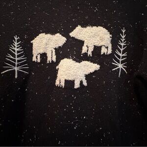 Embrace the cozy warmth of this LOFT turtleneck sweater, featuring a striking white tree silhouette against a black backdrop. Crafted from a thick, knitted material, it offers both comfort and style for chilly days. The nature-inspired design adds a touch of rustic charm to your winter wardrobe.