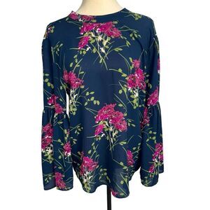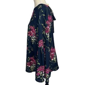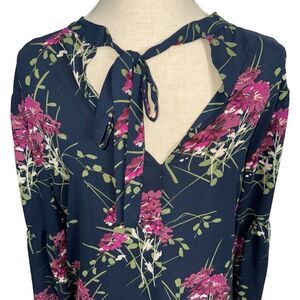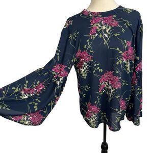 LOFT Black blue purple Long Wide Sleeve Lightweight Floral Blouse Tow Back M