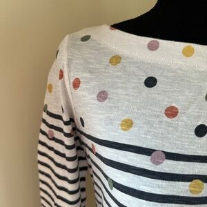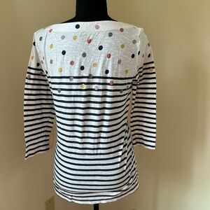 *LOFT* Black x White Striped x Polka Dot 3/4 Sleeve Top Size Small